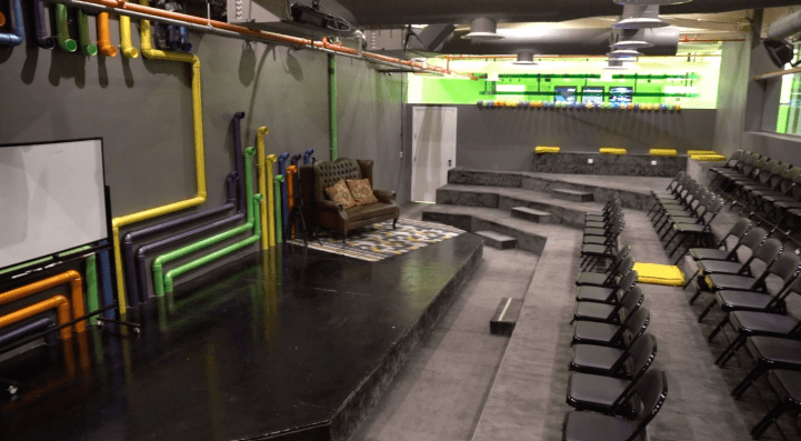 فِنك في الدور الأرضي من حي ويمتد على مساحة ٤٠٠ متر مربع. يضم اللاونج أو منطقة الاستقبال، غرفة للكتابة، قاعة الأنشطة بالإضافة إلى مسرح الوجار الأساسي الذي يتسع لـ٩٠ شخصًا، واستوديو حركي في الدور الأول.