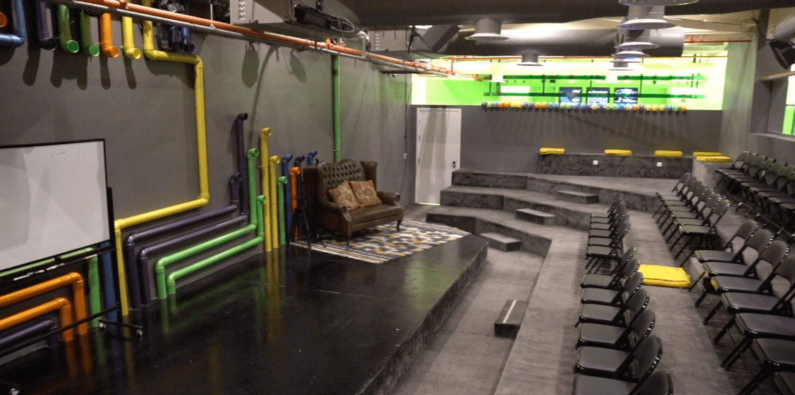 فِنك في الدور الأرضي من حي ويمتد على مساحة ٤٠٠ متر مربع. يضم اللاونج أو منطقة الاستقبال، غرفة للكتابة، قاعة الأنشطة بالإضافة إلى مسرح الوجار الأساسي الذي يتسع لـ٩٠ شخصًا، واستوديو حركي في الدور الأول.